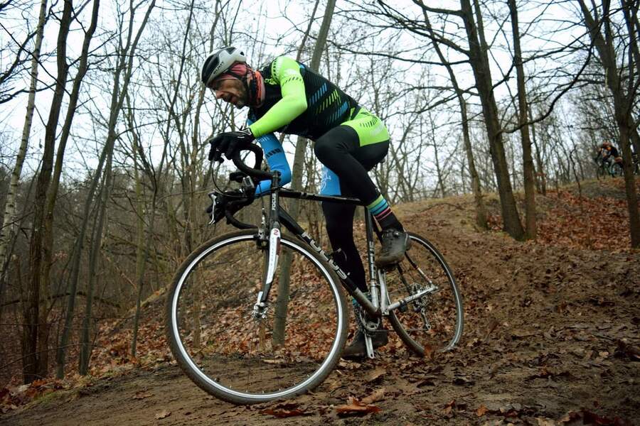 [Aktualizacja – w 2022, po przejechaniu 2 sezonów przełajowych, zmieniłem rower na Scott Speedster CX. Również nie jest to maszyna z najwyższej półki (rama wciąż aluminiowa), ale nowsze technologie jak choćby hamulce tarczowe, pozwalają mi być jeszcze trochę szybszym. Jednak to nic innego jak regularne treningi techniki i litry potu wylane na treningach wydolnościowych pozwoliły mi w 2023 roku zająć 6 miejsce na MP CX w kategorii amator].