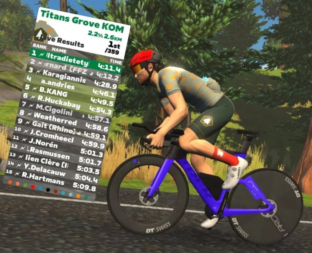 Wyścig na Zwift, trwa najczęściej 40-50 minut, tempo jest interwałowe i zwykle powyżej naszych możliwości. Jedziemy ile sił w nogach, aby w/kg były jak najwyższe. Mimo to, czasem jest to za mało na dobrą pozycję. Okazuje się, że zawodnicy przed nami, pomimo niższych mocy, osiągają lepszy wynik. Tak samo jak to się dzieje w rzeczywistości, gdyż jazda interaktywna w dzisiejszych czasach stała się bardzo zbliżona do tej na zewnątrz,