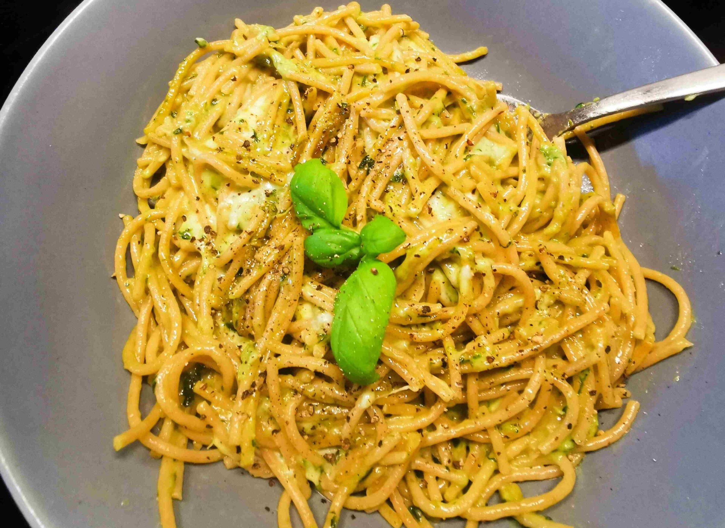 Proste i szybkie przepisy wcale nie muszą być „nie dietetyczne”. Nie ma nic złego w tym, że na co dzień korzystamy tylko z kilku składników, które tworzą nasze dania. Warto, aby w ciągu całego tygodnia spożywać około 60 różnych produktów (wliczając w to również przyprawy), ale jeśli akurat mamy ograniczony czas, to dzisiejszy przepis „makaron z pesto” z powodzeniem możemy przygotować wcześniej i wykorzystać go nawet jako obiad na kilka dni.